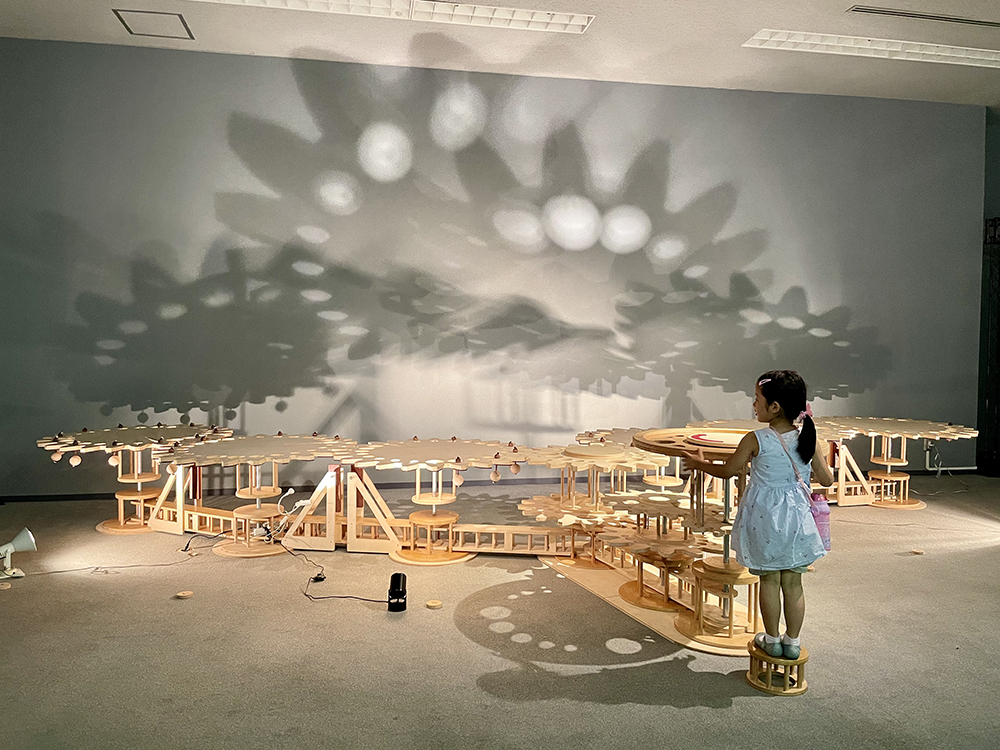木の球を転がすことで音が出たり、ハンドルを回すと音楽が聞こえてきたり、つちやさんの作品はアイディアがいっぱいで、どれも鑑賞者が参加することでその魅力を発揮します。